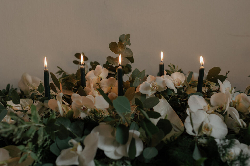 We focused on lots of greenery and gold accents to compliment the wedding party attire all in emerald green. A classic color mix that works anywhere but especially in the almost Italianesque vibe of Bellinter House.